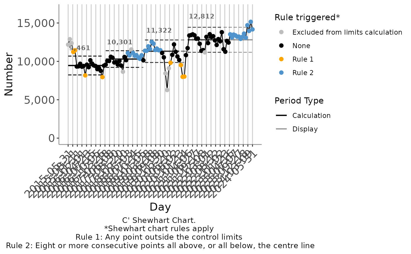 Highlight colour for breaks of rule 1 (points outside the control limits)