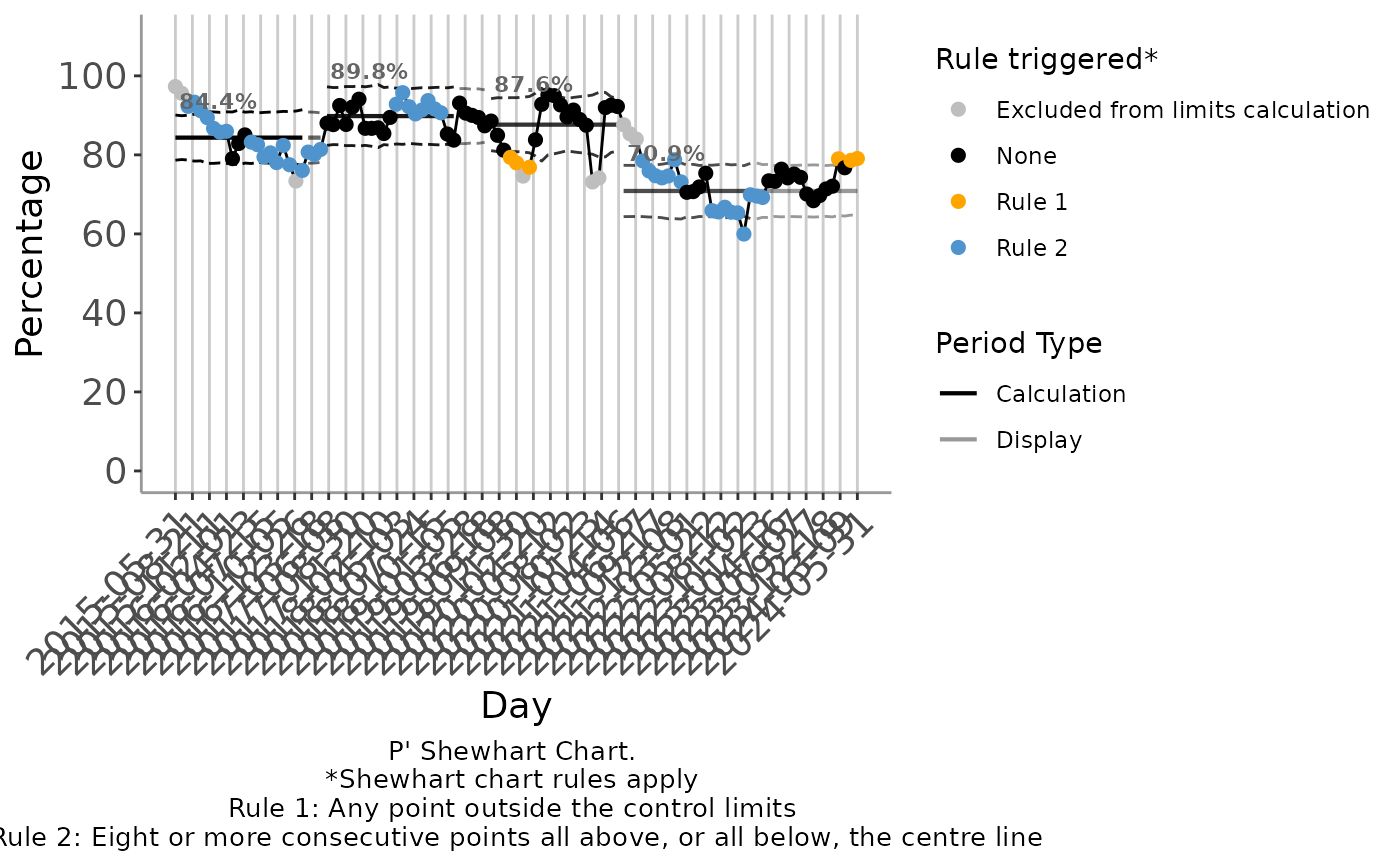 #Using a P' chart to track changes in the percentage admitted within 4 hours